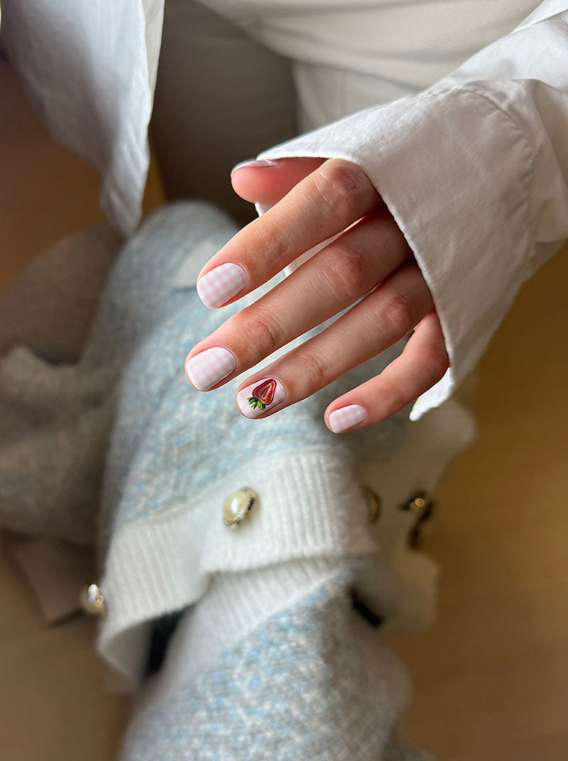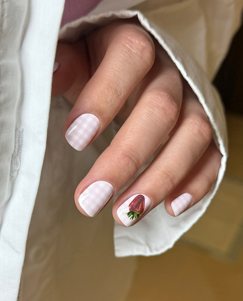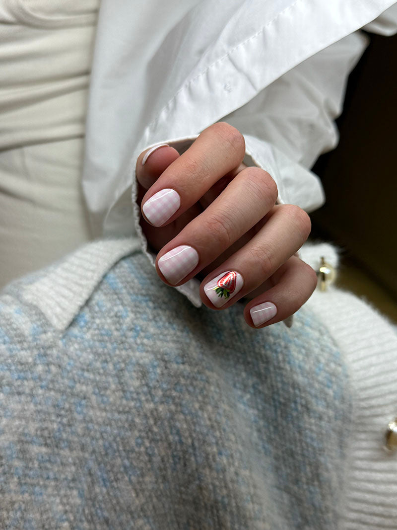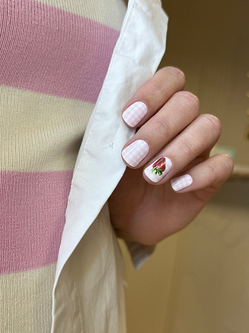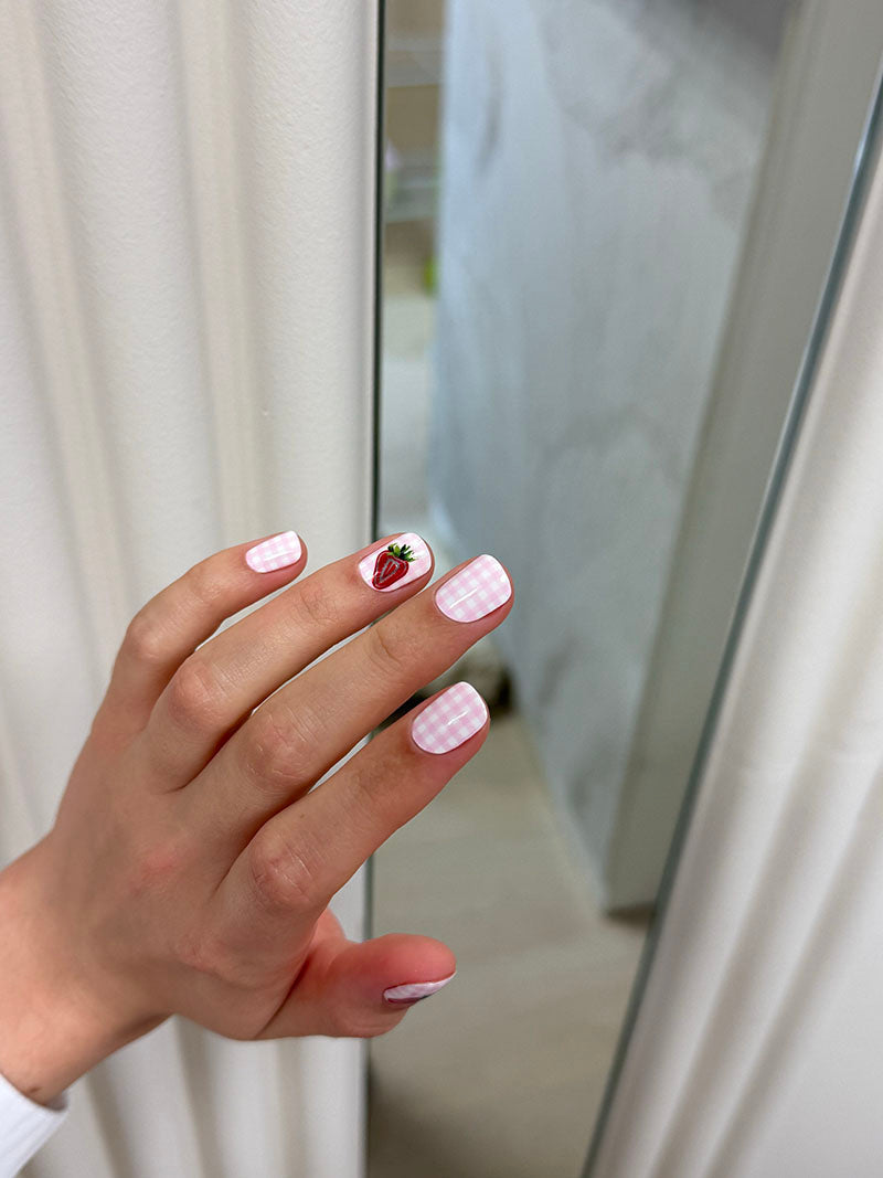 Manicure Strawberry. Pink Checkered. Colored Foil. Nail wraps WM-492