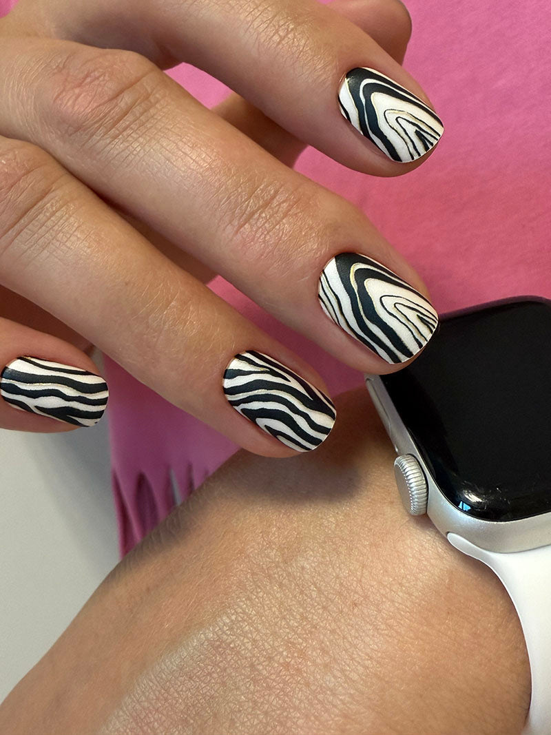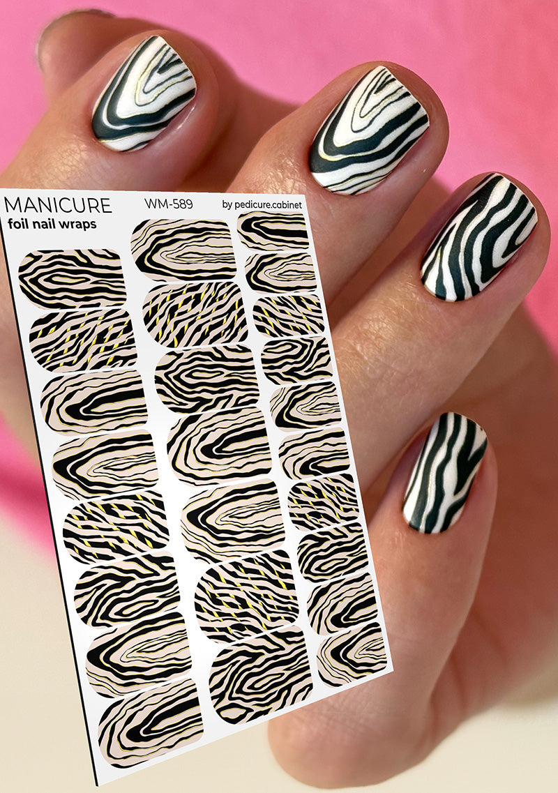 Manicure Zebra. Gold Foil. Nail wraps WM-589