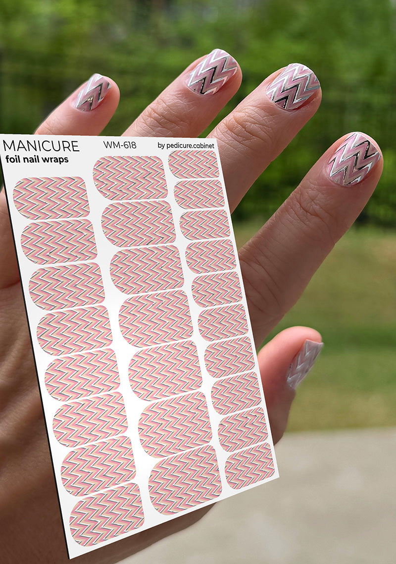 Manicure Zigzag. Foil silver. Nail wrap WM-618