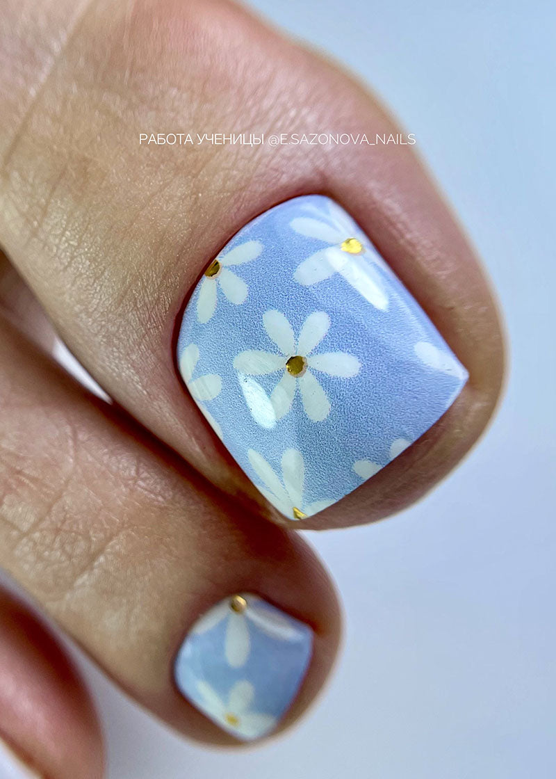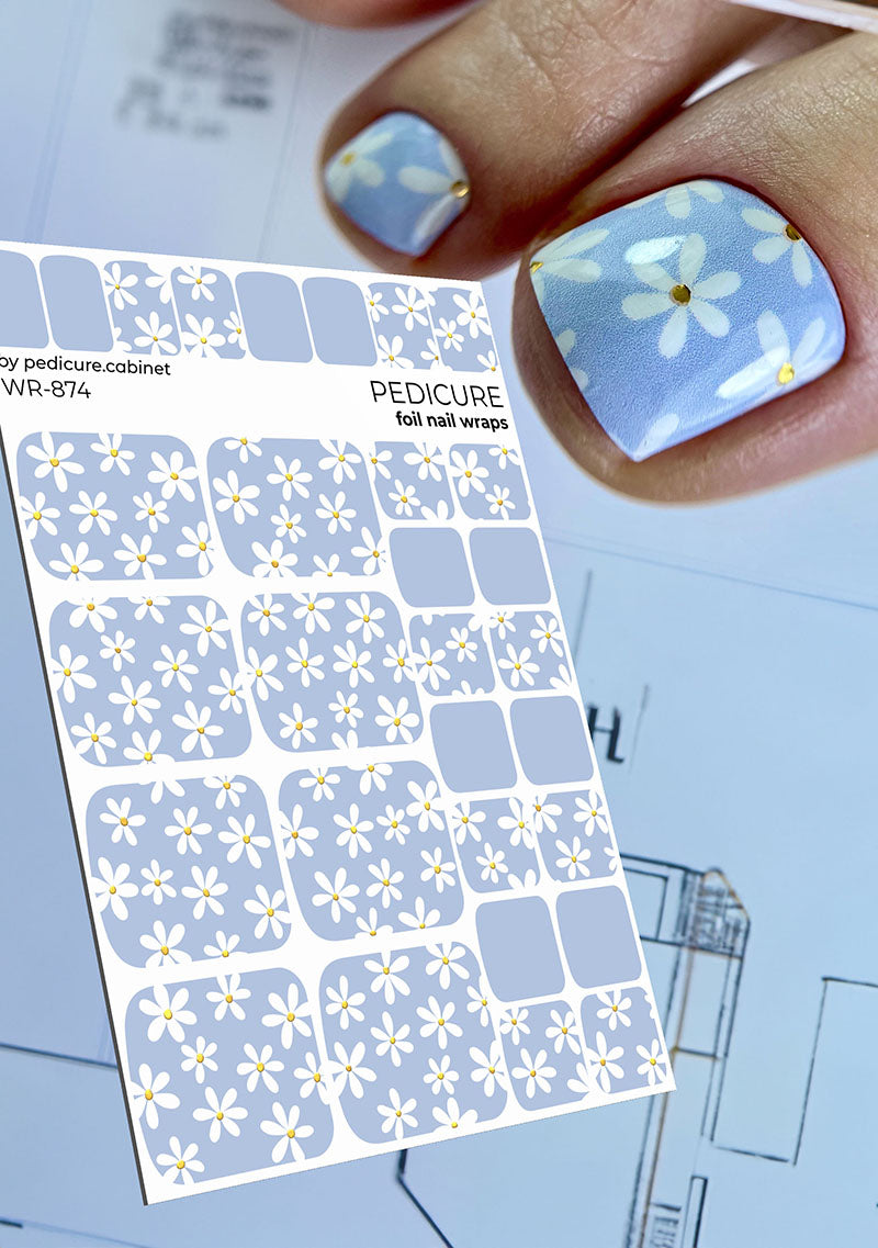 Pedicure Chamomile. Blue. Foil gold. Nail wrap WR-874