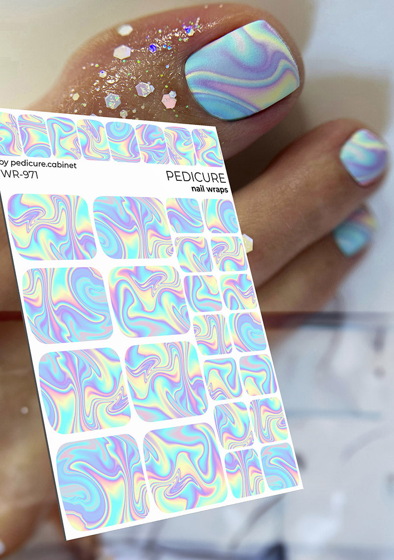 Pedicure Divorces. Blue yellow lilac. Nail wrap WR-971