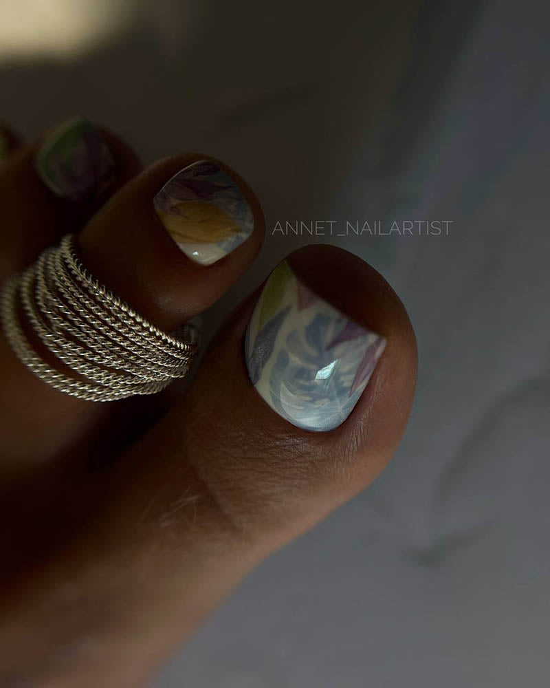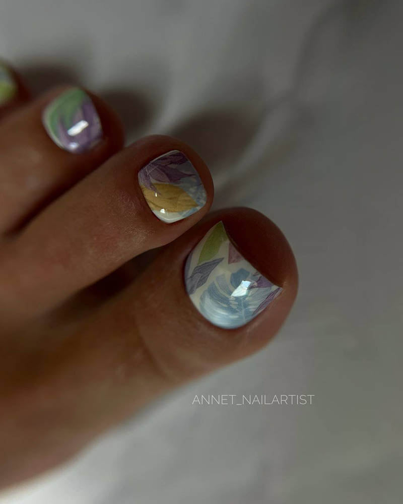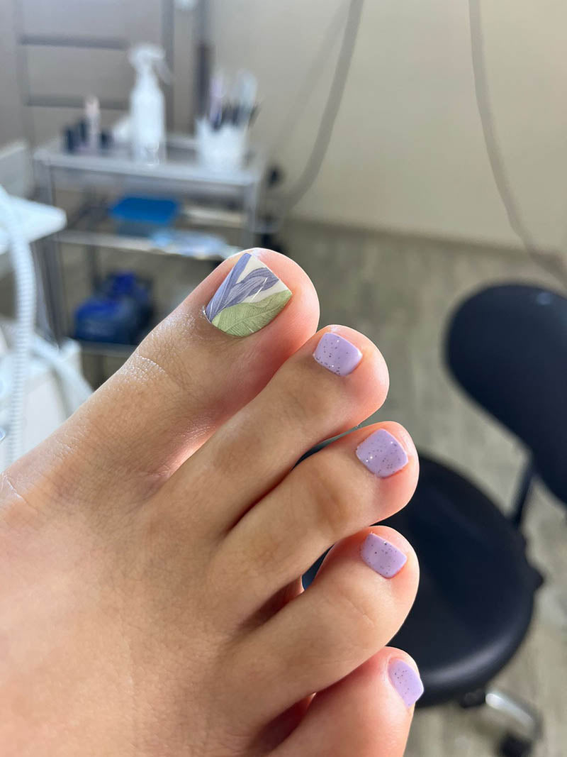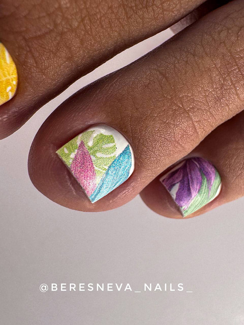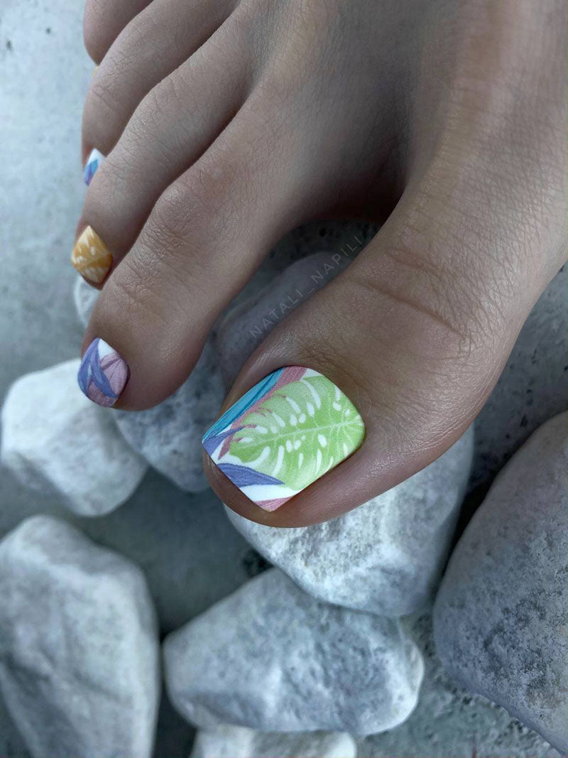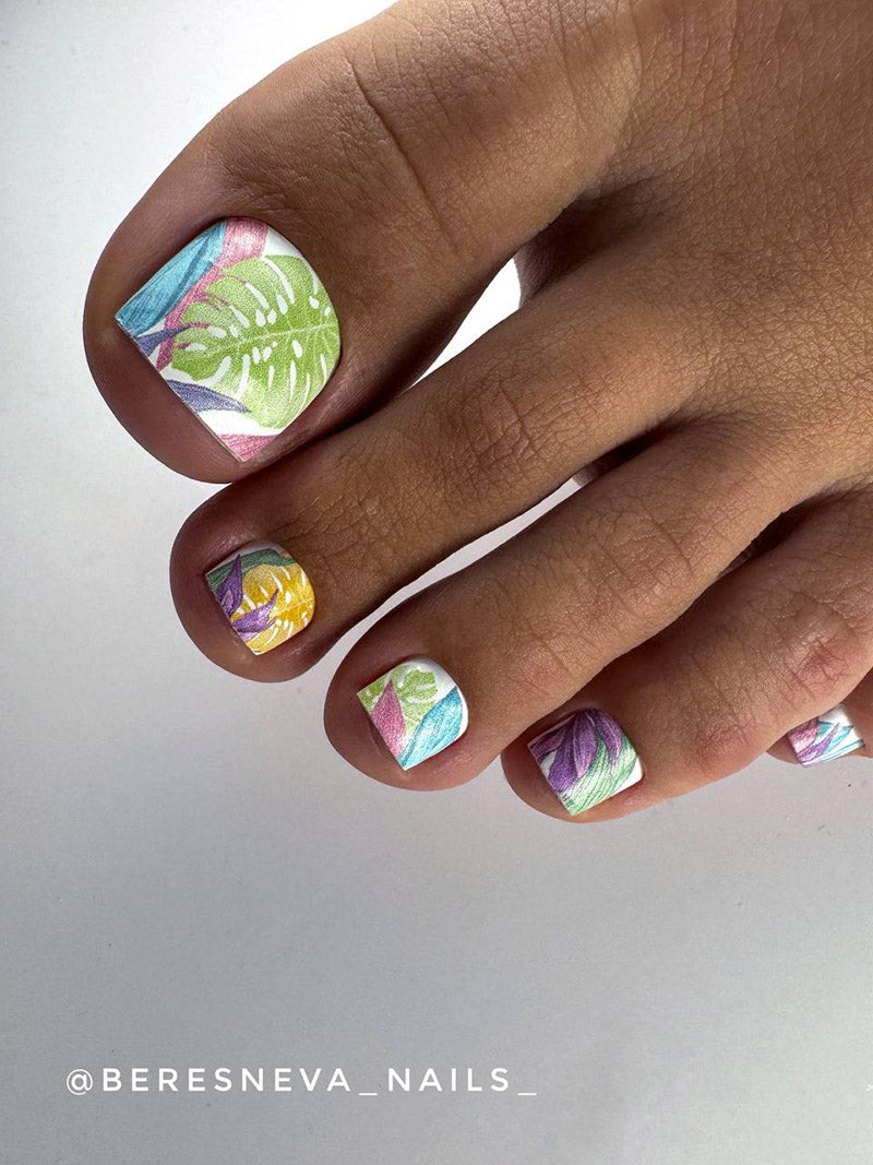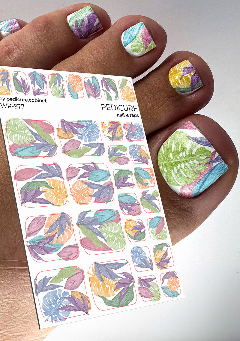Pedicure Large leaves. Pastel. Nail wrap WR-977