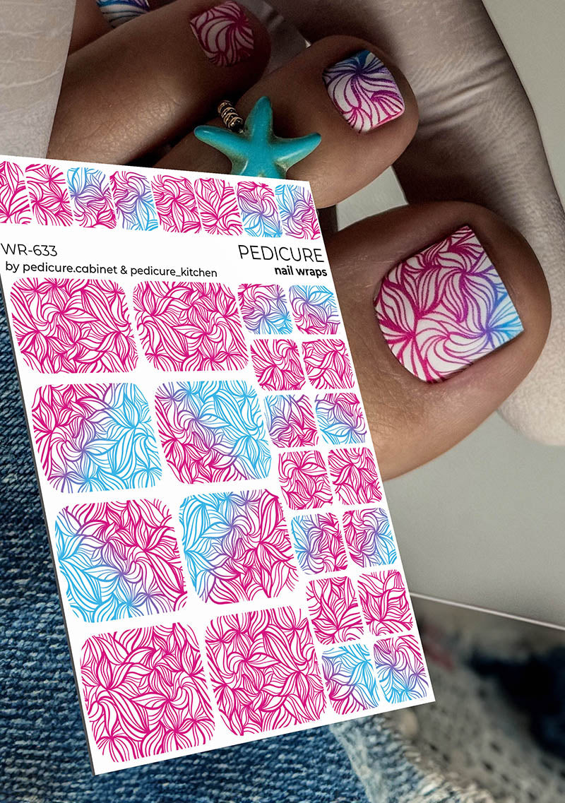 Pedicure Leaves. Gradient and Pink. Nail wrap WR-633