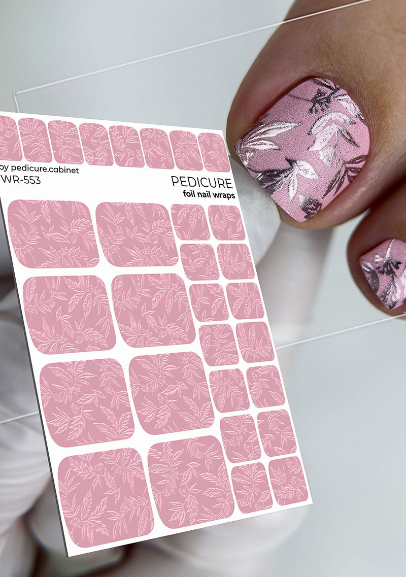 Pedicure Pink Leaves. Colored Foil. Nail wraps WR-553