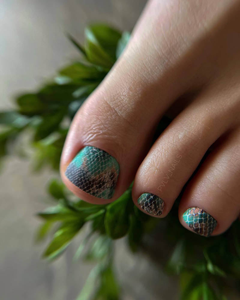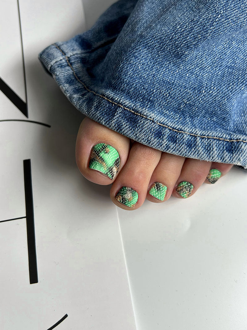 Pedicure Python. Color. Green. Nail water decals SD-121
