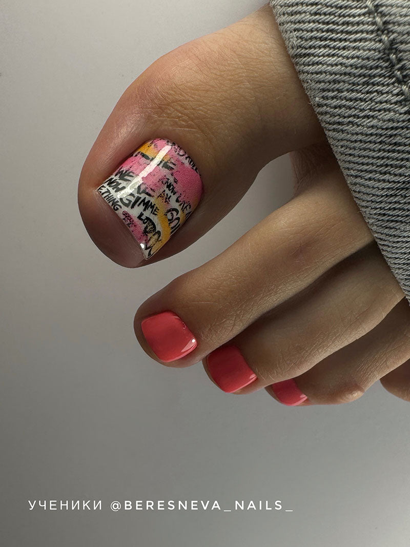 Pedicure Words + colored stains. Large. Nail water decals SD-138